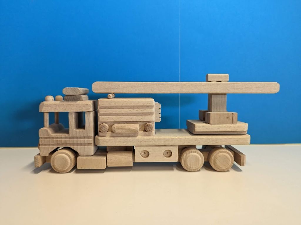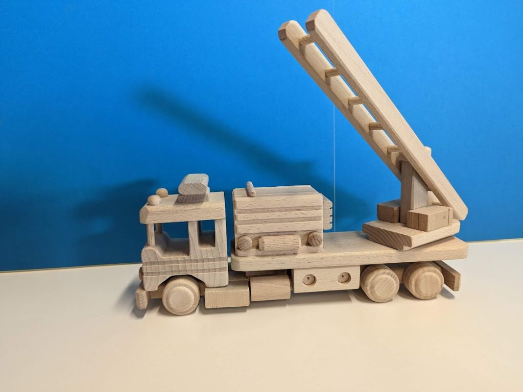 Hasičské auto je vyrobené z masivního bukového dřeva, které není povrchově ošetřeno. Dekorace z masivního bukového dřeva Vám vydrží několik generací. Vše je precizně zpracováno, dřevo obroušeno, kola se dají otáčet, žebřík je polohovatelný.