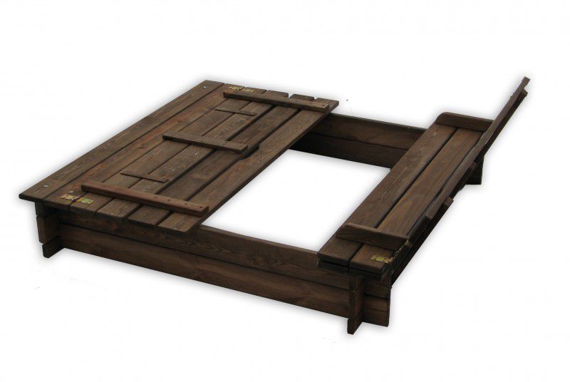Čtvercové pískoviště s lavičkami. Vyrobené z borovicového dřeva (impregnované). Z laviček jednoduchým složením vytvoříte poklop pískoviště! Toto pískoviště zahrnuje zábavu pro nejmenší, posezení a zároveń praktické uzavírání.