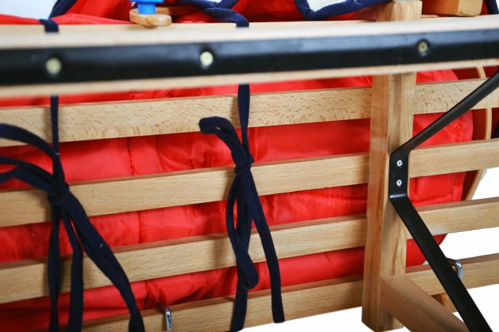 Dřevěné sáňky s ohrádkou a červeným fusakem, 100 cm