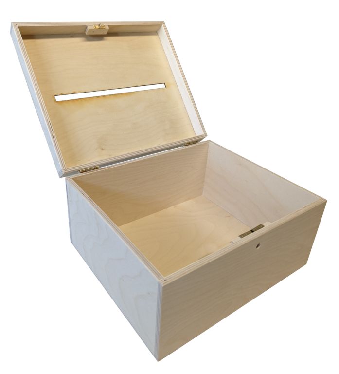 Dřevěný box z masivního borovicového dřeva vynikne na Vaší svatbě. Box je uzamykatelný a klíček je samozřejmě součástí balení. Je bez povrchové úpravy a lze si jej natřít jakýmkoliv výrobkem určeným na dřevo a nebo jej ponechat v přírodním nenatřeném stavu.