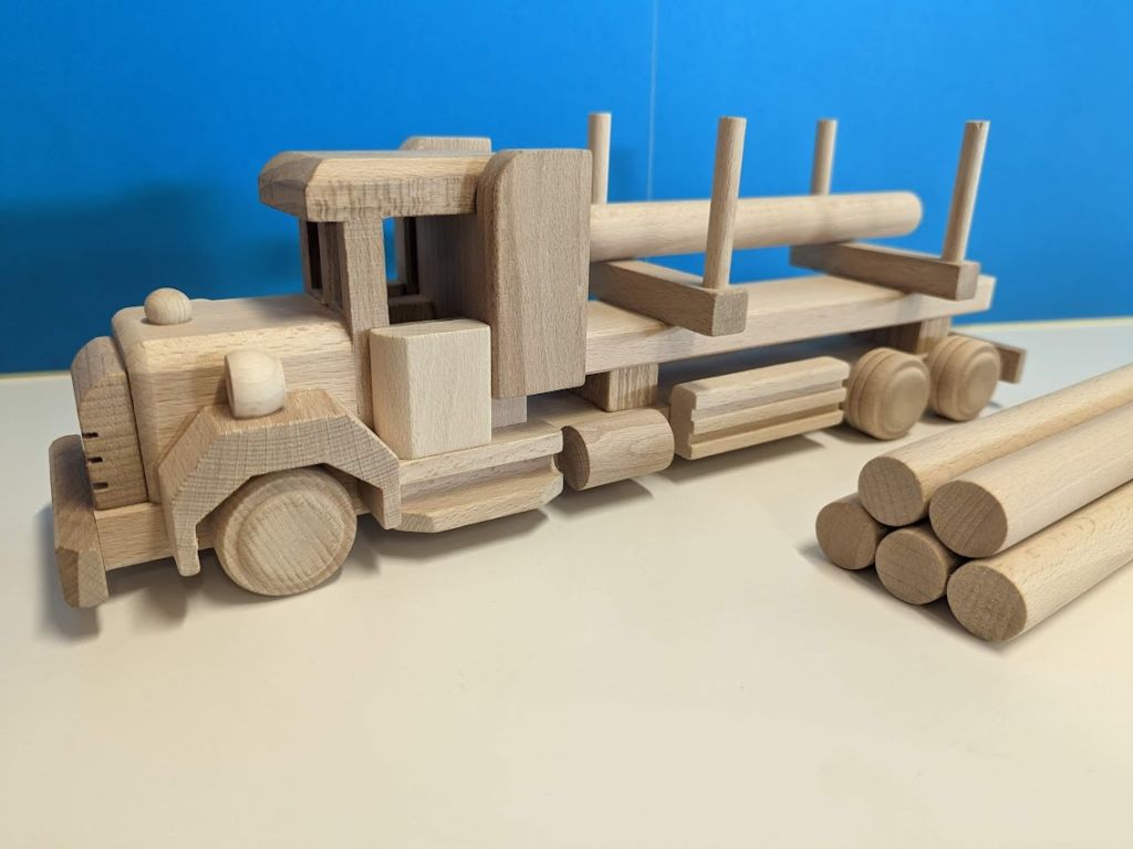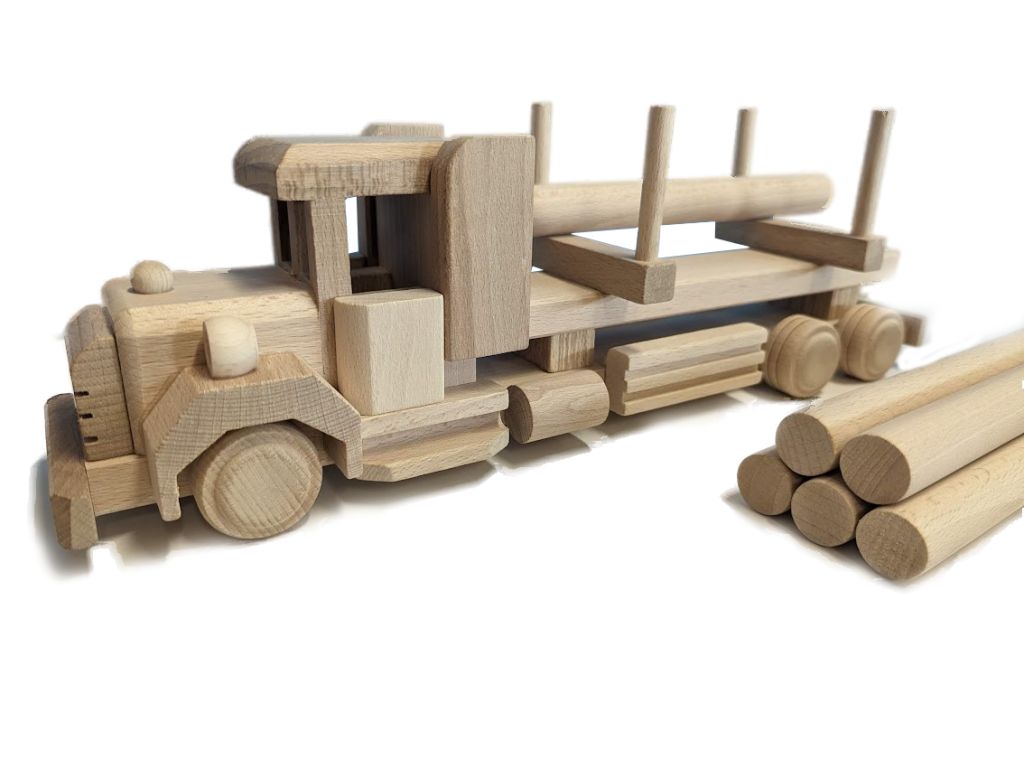 Dřevěný kamion je vyrobený z masivního bukového dřeva, který není povrchově ošetřeno. Pojízdný kamion z masivního bukového dřeva Vám vydrží několik generací. Vše je precizně zpracováno, dřevo obroušeno, kola se dají otáčet. Klády se dají jednotlivě vyjmout a dá se s nimi hrát i jednotlivě a něco z nich postavit.