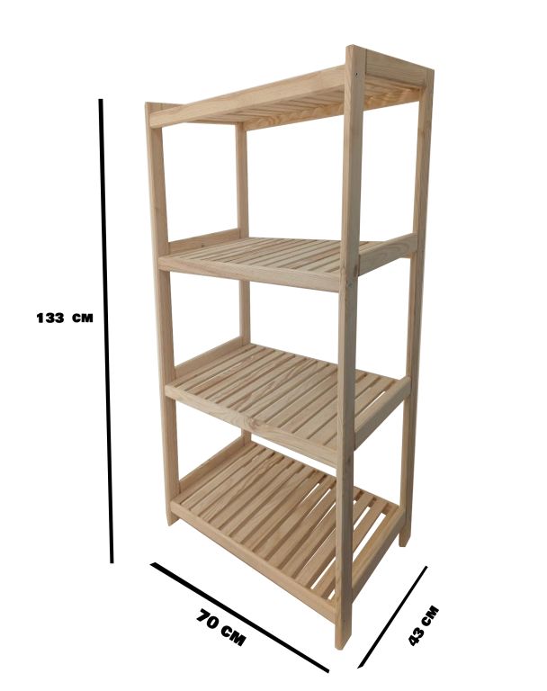 Dřevěný regál se 4 policemi, 133 x 70 x 43 cm