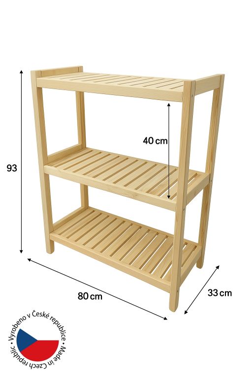 Dřevěný regál z borovice 3 police 93x80x33 cm, česká výroba