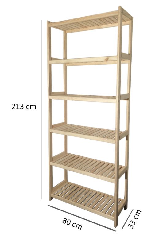 Dřevěný regál z borovice 6 polic 213x80x33 cm, česká výroba