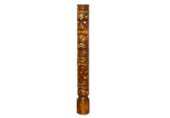 Ručně vyřezávaná socha ze dřeva s Tiki motivem.