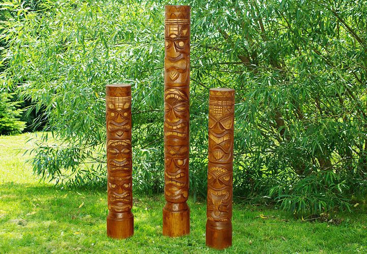 Sochy Tikis jsou určeny pro výzdobu interiérů. Vystavení povětrnostním vlivům, může vést k erozi a prasklinám ve dřevě.