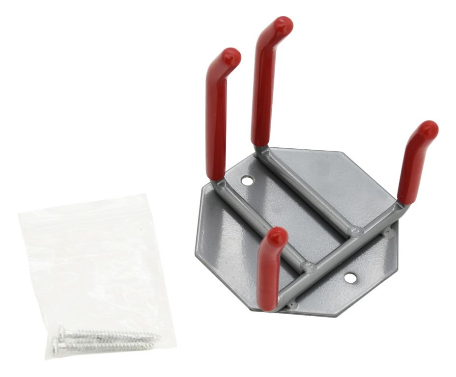 Háky jsou opatřeny kvalitní gumou, která zabraňuje poničení a zároveň funguje jako protiskluzná vrstva. Montáž držáku se provádí do zdi, pomocí vrutů.