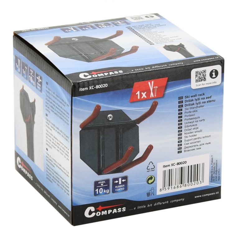 Zobrazit podrobnější popisPraktický držák lyží a hůlek s uchycením do stěny. Držák je celokovový a je tvořen pevnou základnou a sestavou háků.