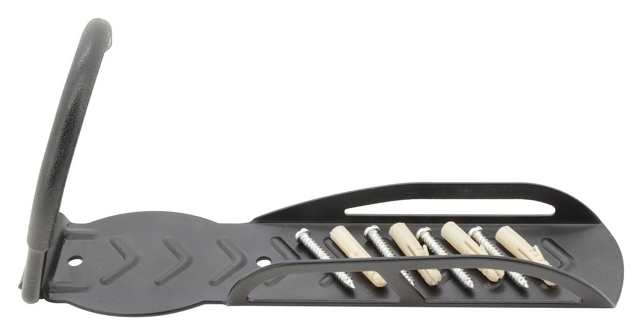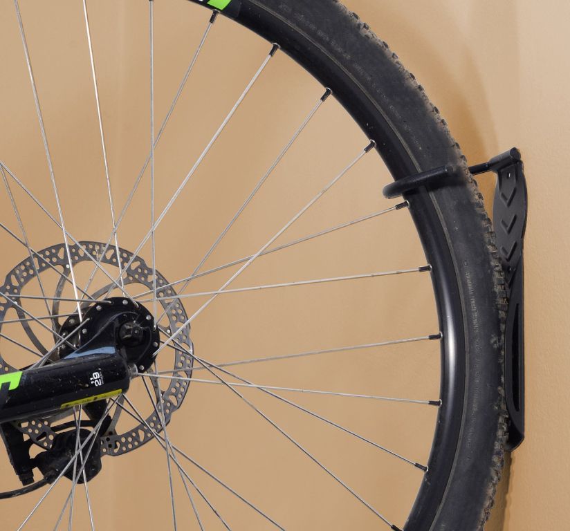Držák je vybaven hákem pro zavěšení předního kola a vodící deskou, díky které kolo neznečistí zeď a zároveň zabraňuje výraznému naklánění kola do stran. Díky zavěšení kola do držáku snadno ušetříte místo. Montáž držáku se provádí do zdi, pomocí 4 vrutů s hmoždinkami. Konstrukce držáku je celokovová s pogumovaným hákem a maximální nosnost je 20 kg.