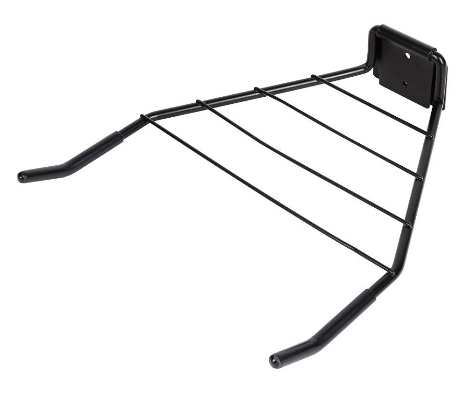 Sklápěcí držák jízdního kola s mřížkou pro příslušenství, určený k montáži na stěnu. Kovový držák je tvořen sklápěcím zdvojeným ramenem a mřížkou. Konce držáku jsou pogumované pro bezpečné ucycení rámu bicyklu a na mřížku je možné odložit dodatečné příslušenství jako je helma, brašna atp.. Montáž držáku se provádí do zdi, pomocí vrutů s hmoždinkami.