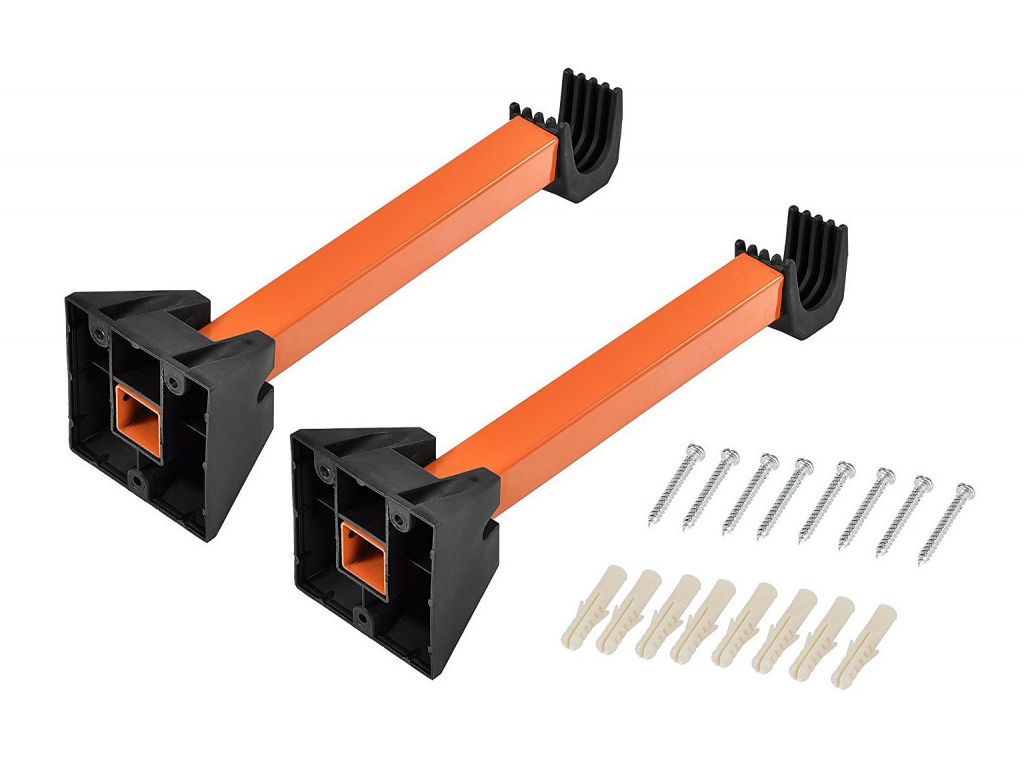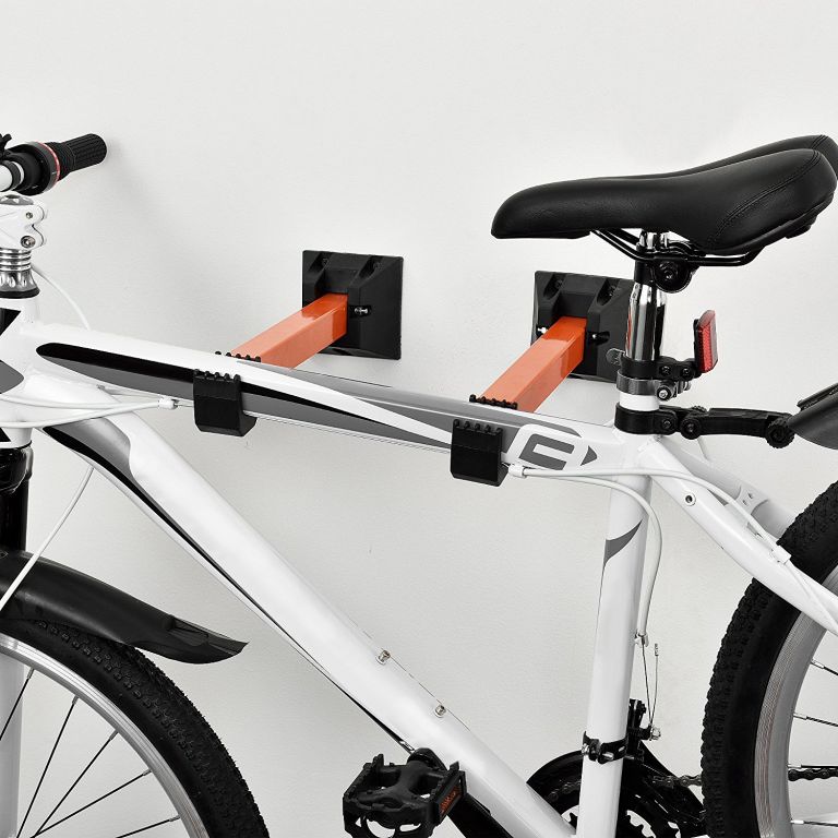 Dvoudílný, sklápěcí držák jízdního kola určený k montáži na stěnu. Držák s kovovou konstrukcí je tvořen dvěma sklápěcími rameny, s plastovým zakončením tvarovaným pro bezpečné uchycení rámu bicyklu. Montáž držáku se provádí do zdi, pomocí vrutů s hmoždinkami.