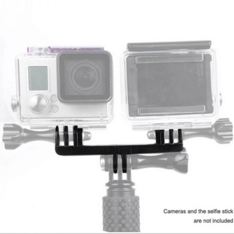 Rozdvojka pro použití dvou akčních kamer se standartním úchytem najednou vám otevře nové možnosti při natáčení. Toto uspořádání vám umožňuje natáčet simultánně stejnou scénu dvakrát, což lze využít například pro porovnávání obrazů mezi různými kamerami v závislosti na jejich typu nebo nastavení. Můžete nahrávat ve stejnou chvíli scénu ze dvou různých úhlů (s využitím např. otočných držáků).
