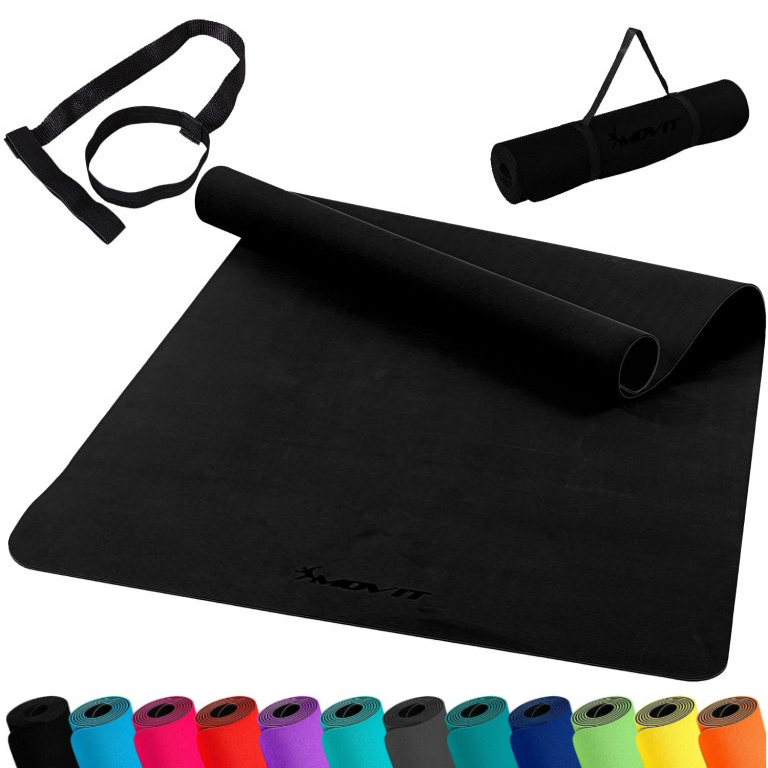 Velká protiskluzová podložka MOVIT zajistí pohodlí a stabilitu při józe, pilates i fitness cvičení, šetrná ke kloubům i pokožce.