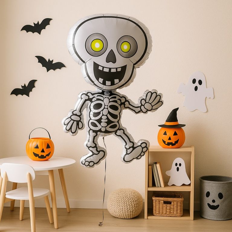 Heliový balónek Kostra je úspěšnou halloweenskou dekorací. Nezáleží na tom, zda je to strašidelné, vtipné nebo divné - pár odpovídajících balónků s mottem vykouzlí vhodnou atmosféru. Balón Kostra může být naplněn plynným heliem nebo klasickým vzduchem. Velké balónky mají automatický ventil, který je stejně jednoduchý jako důmyslný. Jednoduše přiložte hadici s plynným héliem, abyste balón nafoukli, nebo brčko pokud budete foukat vzduch z plic. Poté vytáhnout a heliový balón se automaticky zavře. Jednoduše ventil zalepit a balónek vydrží déle. Volitelně můžete přidat váhu balónu.