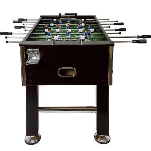Kvalitní stolní fotbálek, který vás nadchne už srovnáním kvality a ceny. Tento fotbal má tělo vyrobeno z MDF a je vybaven čtyřmi výškově nastavitelnými ocelovými nohami (s chromovým vzhledem a gumovými nožičkami pro ochranu podlahy). Výhodou tohoto fotbálku jsou též držáky nápojů, protiskluzové rukojeti pro pohodlnější hru, malované figurky k našroubování a zkosené rohy, které zabrání uvíznutí míčku. Stůl je dodáván rozmontovaný, ale jeho montáž je velmi rychlá a snadná. Hrany jsou v chromovém provedení.