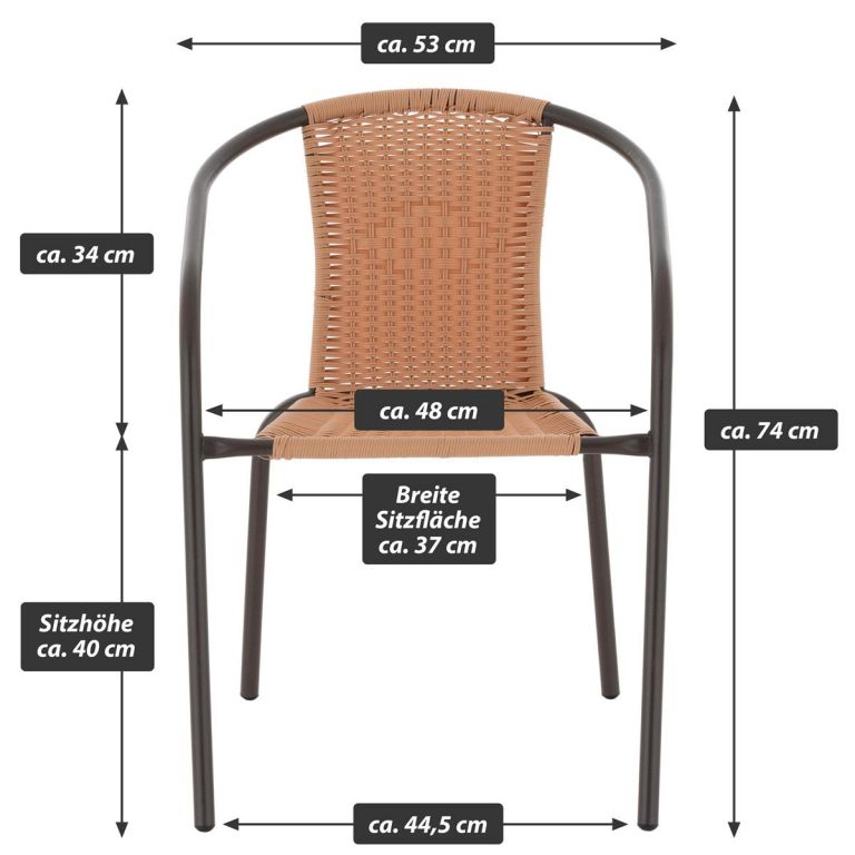 Tato bistro židle je vhodná pro pravou středomořskou atmosféru u vás doma. Nohy židle jsou opatřeny gumovými krytkami. Zabraňují uklouznutí, tlumí hluk při pohybu a jsou šetrné k podlaze. Rám je vyroben z práškově lakované oceli s kladívkovou povrchovou úpravou. Polyratan je vyroben z plastu, je odolný proti roztržení a zajímavě tkaný.