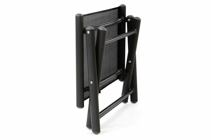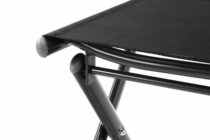 Textilní tkanina v černé barvě je tvarově i barevně stabilní. Textilní tkanina pro venkovní použití nabízí vysoký dlouhodobý sedací komfort, resp. pohodlnou oporu nohou, kterým se přizpůsobí. Tkanina nabízí optimální ventilaci sedací plochy, je odolné vlivům počasí a nenáročná na údržbu. Svařené švy. Sklopná stolička přesvědčí sedací plochou, která je velmi příjemná na dotek, odpuzuje vodu a velmi rychle usychá. Stolička je lehká a pohodlně uskladnitelná. Je ideální na terasu a zahradu, balkon, koupaliště nebo ke kempinku.