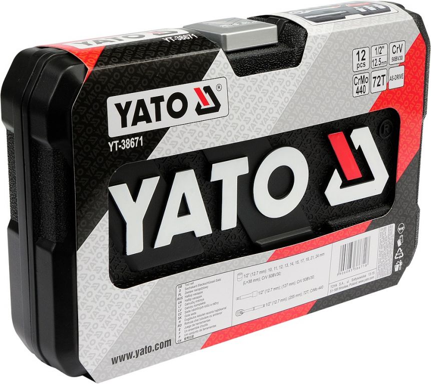 10x nástavec 1/2": 10; 11; 12; 13; 14; 15; 17; 19; 21; 24 mm, (38 mm)