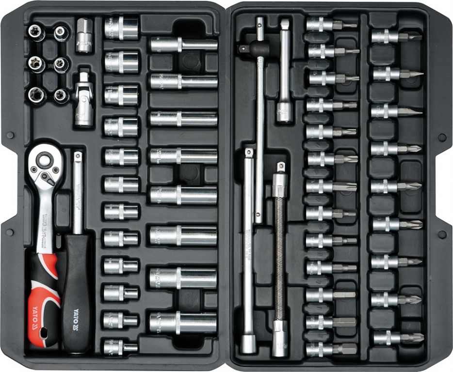 Gola sada 1/4" obsahuje 56ks: nástavců, prodlužovacích nástavců, ráčnu s plastovou rukojetí a další příslušenství. Vyrobené z kvalitní oceli CrV50BV30, CrV40, CrV6150, CrMo440 a S2 s funkcí AS-DRIVE. Ráčna má jemný 72 zubý chod. Funkce AS-DRIVE umožňuje vyvinout větší kontaktní sílu, neboť ke kontaktu se šroubem nedochází na hranách šestihranu, nýbrž v první třetině styčných ploch. Tím nedochází k poničení hlavice šroubu. Ořech mnohdy povolí i matice a šrouby již poničené. Sada je přehledně uložena v kufříku.