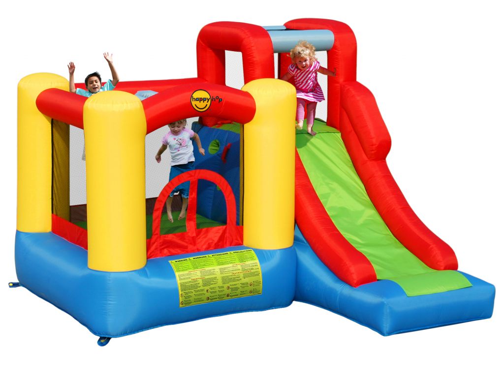 Splňte svým dětem sen a postavte jim na zahradě vlastní nafukovací hřiště, kde můžou dát průchod své nekonečné energii. V tomto hracím centru mohou děti skákat, šplhat, prolézat, klouzat se na skluzavce a maximálně dovádět. Hlavní skákací plocha je zabezpečena síťovinou, výstup na skluzavku ulehčují madla a stupáky, skluzavka je opatřena bezpečnostními mantinely. Výrobním materiálem je laminované PVC a nylon.