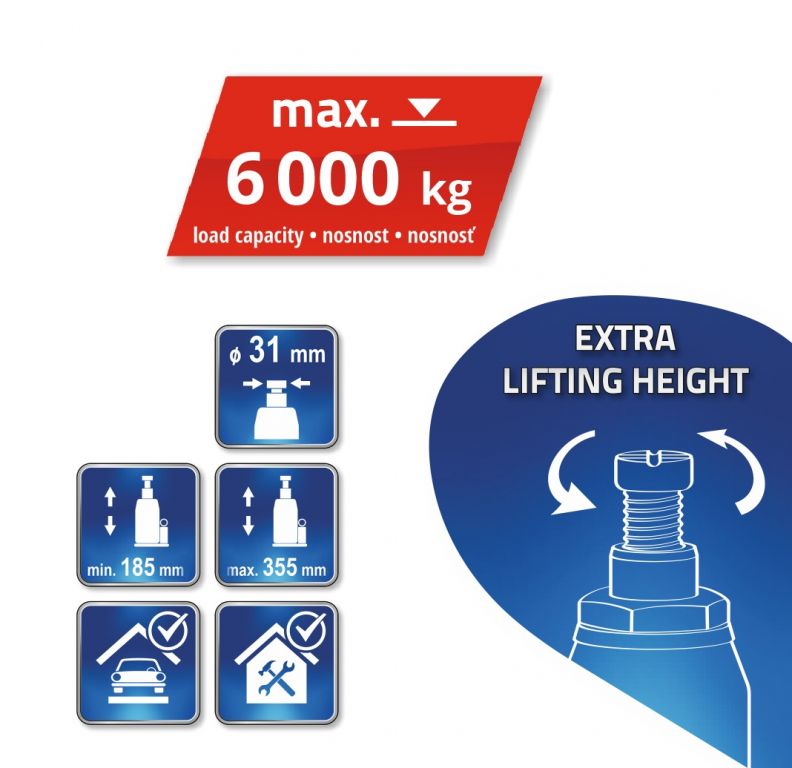Hydraulický hever s maximální nosností 6 t a volitelnou pracovní výškou zvedáku Vám nesmí chybět v žádné garáži.