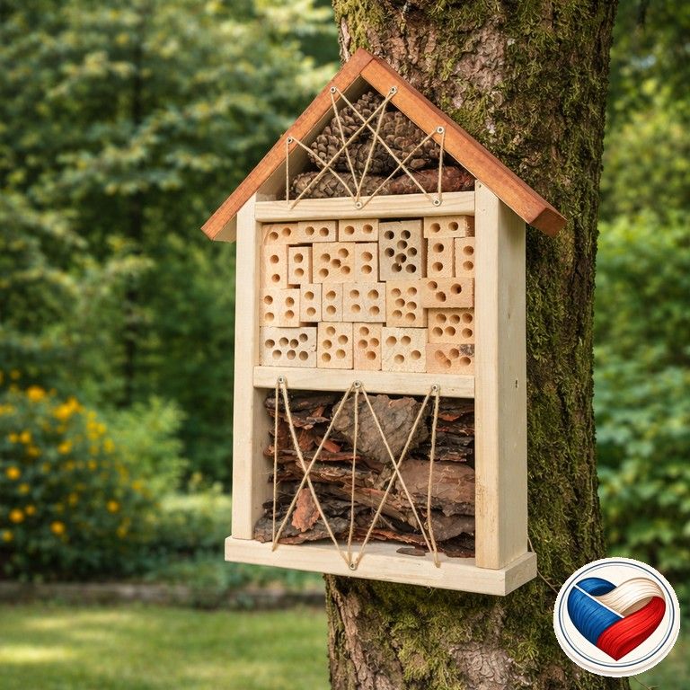 Podpořte opylovače a omezte mšice bez chemie. Hmyzí hotel z české truhlárny v Krušných horách, připravený k zavěšení.