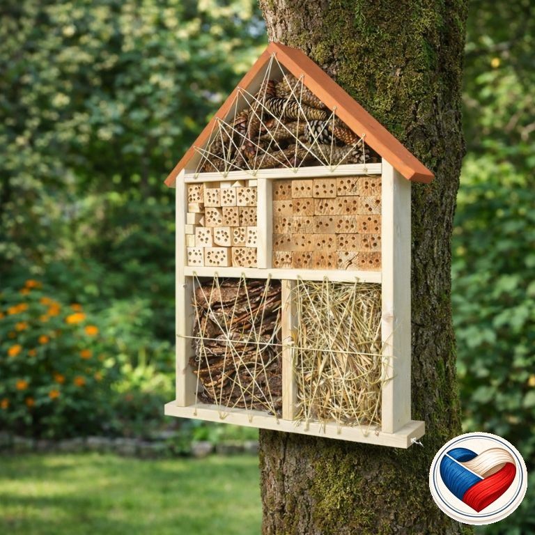 Hmyzí hotel je malý detail, který udělá na zahradě velkou službu. Poskytne bezpečný úkryt užitečnému hmyzu – opylovačům i přirozeným „strážcům" proti škůdcům. Včely samotářky pomáhají s opylením ovocných stromů, berušky a zlatoočka se zase rády postarají o mšice. Když chcete pěstovat s lehčí hlavou a bez zbytečné chemie, tenhle domek je skvělý začátek. Navíc jde o ruční výrobu z české truhlárny v Krušných horách na západě Čech.