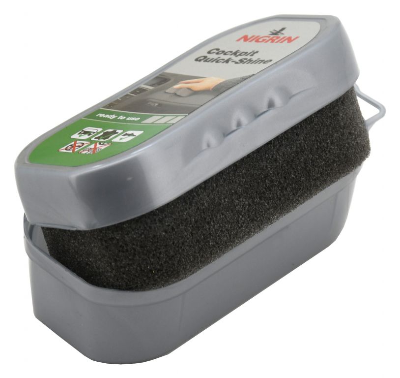 Silikonová houbička s emulzí zaručující snadné čištění, udržování a ochranu s dlouhodobým leskem pro palubní desky, kožené a plastové povrchy.