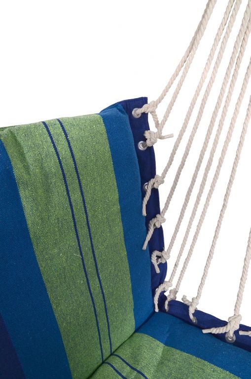 Síť je tvořena měkkým polstrovaným sedákem. Vysokou míru komfortu zajišťuje právě polstrování o tloušťce 3 cm, doplněné hustě tkaným, měkkým a pružným vláknem jednotlivých provazů. Provazy jsou protaženy dřevěnou tyčí zabezpečujíce stabilitu a jednotlivá 5 mm vlákna jsou na konci zapletena do závěsného kroužku.
