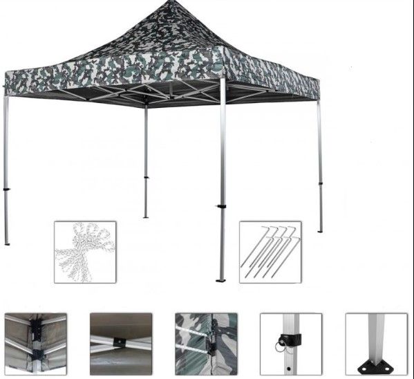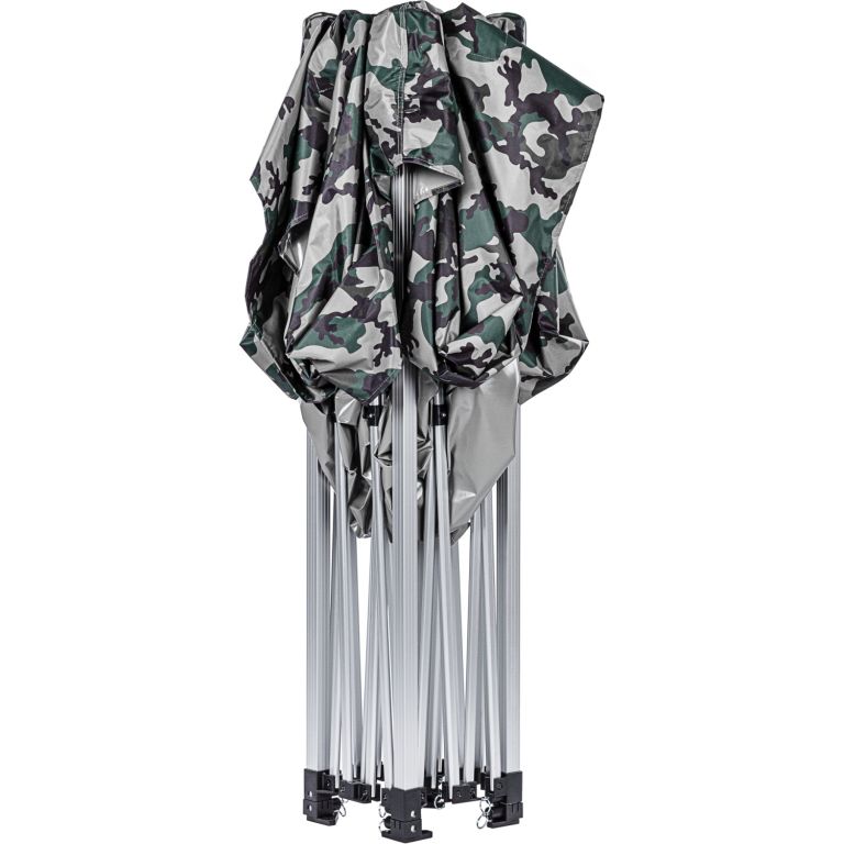 Skládací stan včetně bočnice se zipem a bočnice s XXL panoramatickým oknem je vysoce kvalitně zpracován. Na první pohled zaujme neotřelým provedením a kvalitou použitého materiálu. Stan je 100% funkční. Je totiž vodotěsný a díky speciálně impregnované střešní krytině blokuje až 98 % UV slunečního záření. Nerezový rám poskytuje ochranu vůči poškrábání a korozi. Pro další stabilitu a podporu slouží zvětšené nohy konstrukce, extrastabilní spojovací materiál a vysoce kvalitní klikací systém se zajištěním vnějším šroubem s tažným kroužkem. Pro podpororu střechy je intergrovaný středový napínací sloupek.