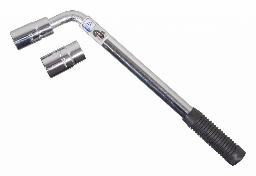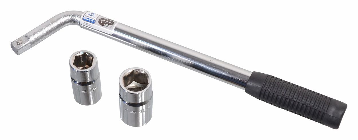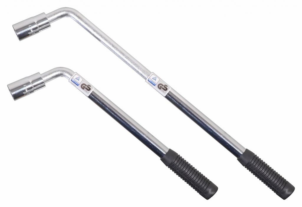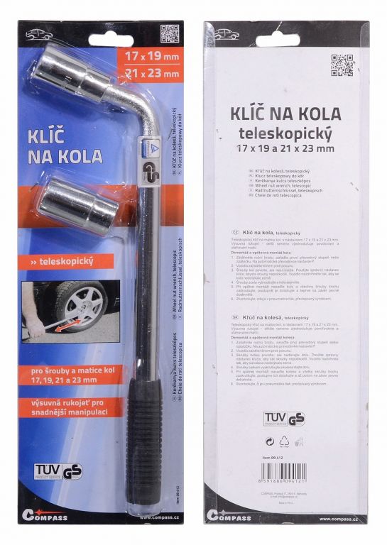 Zobrazit podrobnější popisTeleskopický kovový klíč ve tvaru písmene L, který je určen pro povolování či utahování matic kol automobilů.