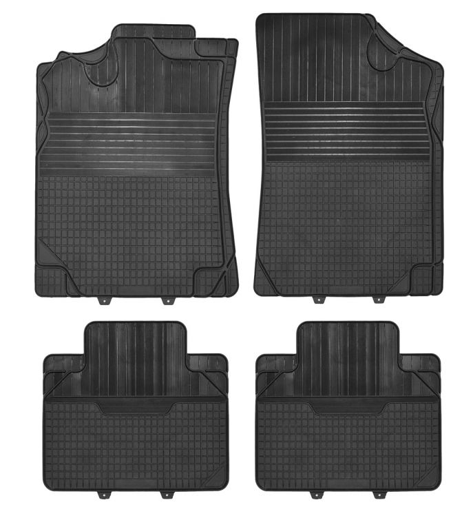 Sada 2x přední díl + 2x zadní díl univerzálních gumových autokoberců s protiskluzovou úpravou. Díky jedinečnému tvaru koberců a systému prolisů, ve kterých lze část koberce oddělit nůžkami jsou tyto autokoberce univerzální pro celou řadu vozů.