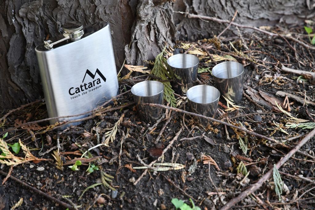 Set 175 ml placatky s nálevkou z nerezové oceli, se 4x nerezovými panáky v praktickém pouzdře. Placatka je neodmyslitelnou součástí campingové výbavy. Její drobné rozměry zajišťují přítomnost vašeho oblíbeného alkoholického, či nealkoholického nápoje na výletech, u vody, ale i na návštěve u souseda. Uzávěr placatky je zajištěný před ztrátou a je klasicky šroubovací s vnitřním těsněním. Tělo z leštěné nerezové oceli je vkusné a na oko lákavé řešení pro nošení oblíbených nápojů. Tento set je navíc doplněn o pouzdro obsahující 4x panáky z nerezové oceli. Díky tomu je možné svolat přátele a kdekoliv v přírodě si dopřát trochu pohody a odpočinku navíc. Praktická nálevka pak zajistí jednoduché doplnění nápojů.
