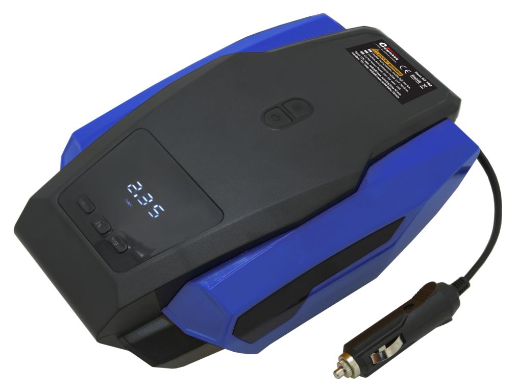 Vysoce výkonný kompresor s Auto-stop systémem a napájením z 12V zástrčky zapalovače vozidla.