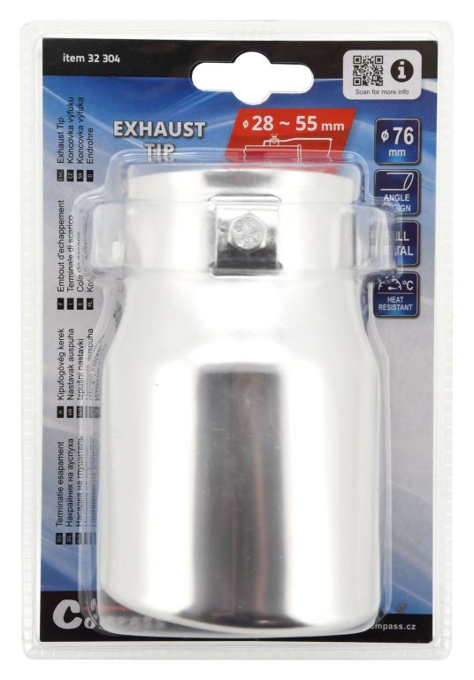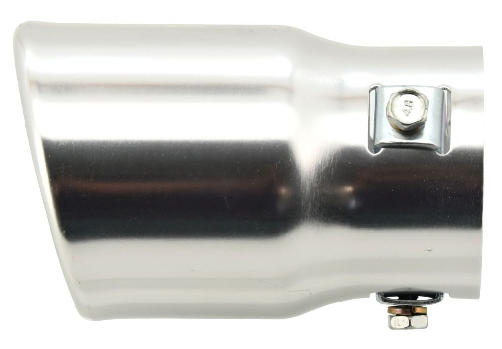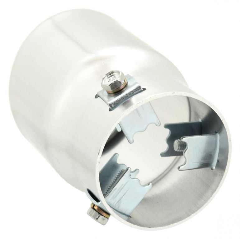 Univerzální kovová koncovka výfuku se zkoseným designem. Zhotovení z odolného kovu s chromovaným povrchem.