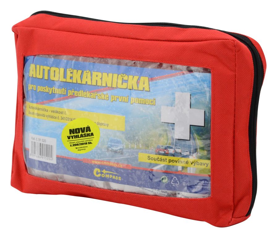 Autolékárnička velikost I. v provedení textilní uzavíratelná brašna. Autolékárnička je součástí povinné výbavy automobilů. Autolékárnička podle vyhlášky č. 341/2002 Sb., ve znění vyhlášky č. 216/2010 Sb. a vyhlášky 182/2011 Sb. Ministerstva dopravy. Obsah odpovídá vyhlášce č. 206/2018 sb. Ministerstva dopravy.