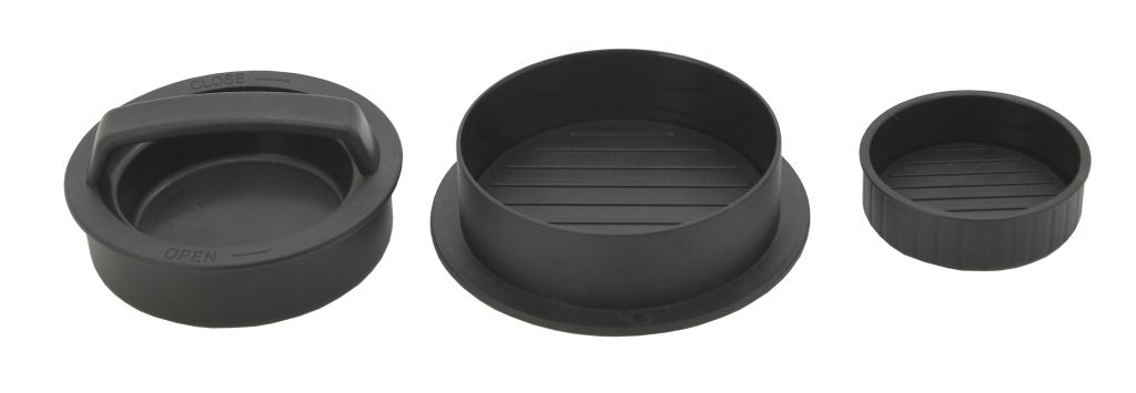 Praktická forma na lisování hamburgerového masa, pro Vaše vlastní domácí, zahradní párty. Komplet je vytvořen z pevného a zároveň lehkého materiálu, který se navíc snadno čistí. Forma se skládá z několika dílů, s jejíž pomocí lze vytvořit masa o průměrech 10 nebo 6,5 cm o libovolném výsledném profilu hamburgeru.