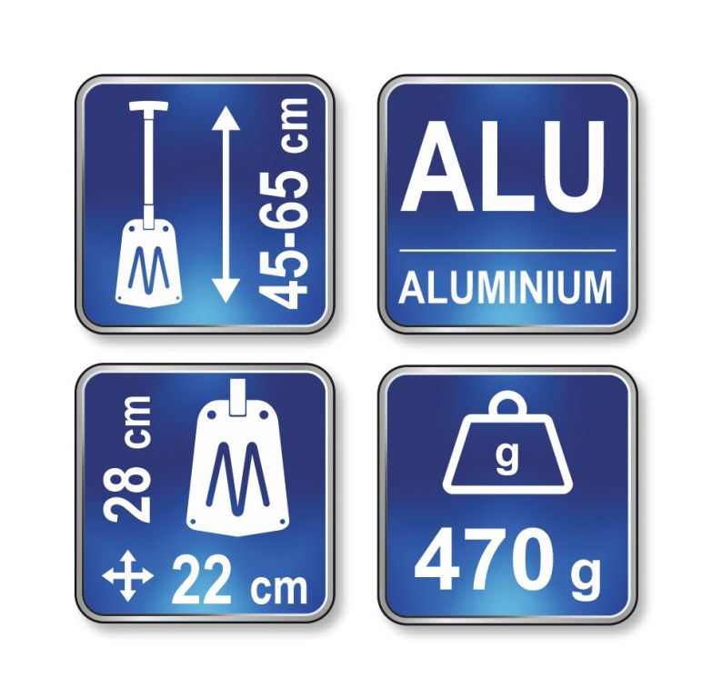 Lopata je vyjma ergonomické, plastové rukojeti tvořena kompletně z hliníku. Násada je vysouvací, lopata tak má celkovou délku 65 cm. Lžíce s rozměry 22 x 28 cm je zhotovena ve zlaté povrchové barevné úpravě.