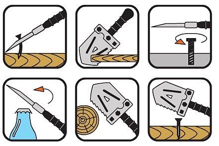 Lopatka s pouzdrem na pásek je ideální pro všechny trampy, rybáře, militaristy, hledače pokladů a milovníky outdoorových aktivit. Víceúčelová lopatka má dutou rukojeť, kde naleznete nástroje nezbytné k přežití v přírodě, jako je vlasec na ryby, sirky, hřebík nebo kompas.