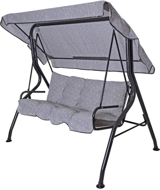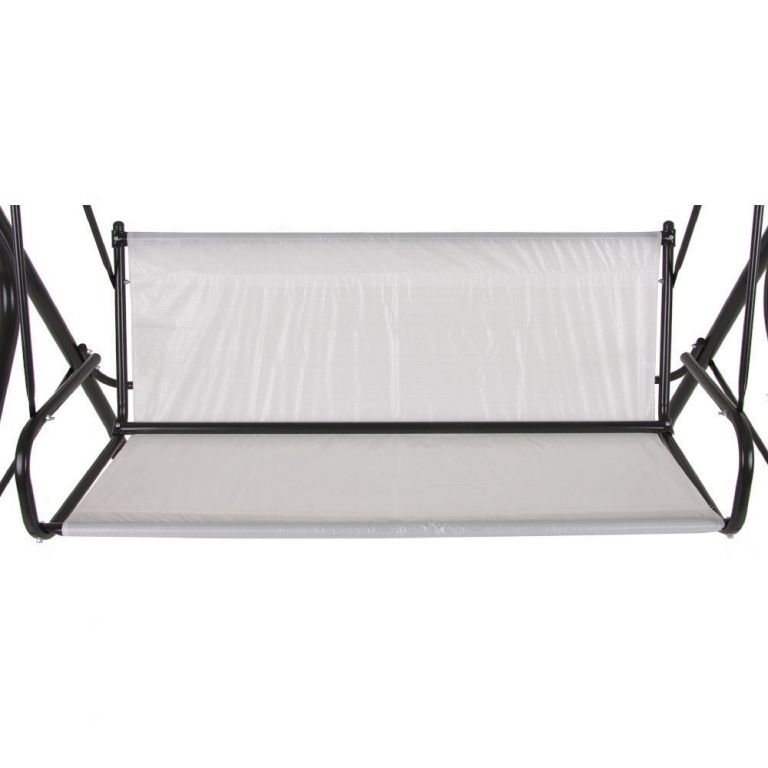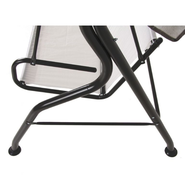 Houpačka pro 3 osoby s pevnou konstrukcí. Rám malovaný práškovou polyesterovo - epoxidovou antracitovou barvou. Stříška vyrobena z polyesteru, má speciální tunely přizpůsobené ke střešní konstrukci houpačky. V sadě také 2 prošívané sedáky. Vrch sedáku z bavlny, spodek z lustrasilu. Obšito lemem z polyesteru. V opěrné části šňůrky pro připevnění k rámu. Stříška z bavlněné tkaniny v barvě sedáků.