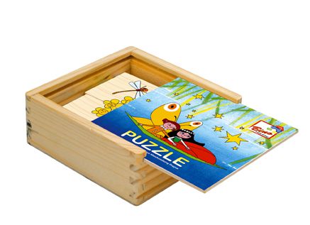 Minipuzzle pro nejmenší - Maková panenka. V dřevěné krabičce najdete 16 destiček, z nichž dokáží i ty nejmenší děti složit 4 obrázky z večerníčku o Makové panence. Puzzle rozvíjí paměťové schopnosti, kombinační schopnosti a představivost a zároveň podporuje rozvoj jemné motoriky.
