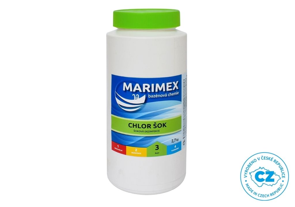 Krátkodobě a rychle zvyšuje koncentraci chloru, který ničí většinu druhů řas, které jsou do bazénu neustále přenášeny prostřednictvím prachu, větru a deště. Účinkuje též na bakterie a viry. Přípravek na 24 hodin výrazně zvýší koncentraci chloru až na 10 mg/l a spolehlivě zničí veškeré bakterie a řasy. Pro správné fungování je nezbytné používat testovací soupravu na měření pH a aktivního chloru v bazénové vodě. Ta by se měla pohybovat mezi 0,3 – 0,6 mg/l. Dávkování: před použitím přípravku zkontrolujte hodnoty pH (6,8 až 7,2). Doporučené dávkování přípravku 13g na 1 m3 vody. Používejte biocidní přípravky bezpečně. Před použitím si vždy přečtěte údaje na obalu a připojené informace o přípravku.