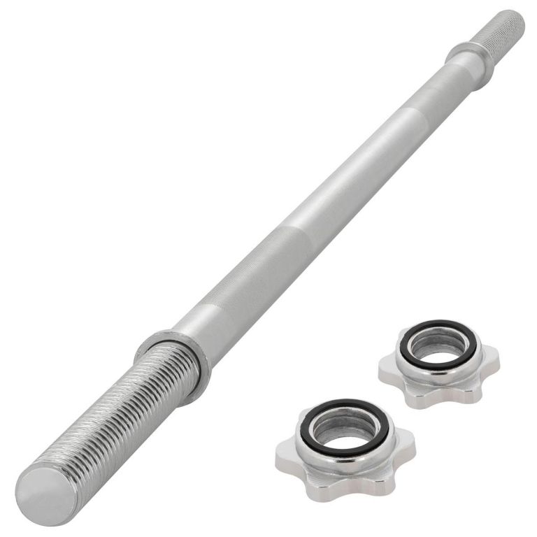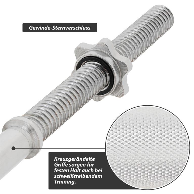 Podpěrná tyč na činky MAXXIVA® je vhodná pro všechny komerčně dostupné zátěžové desky s 3 cm držákem desky. Pultová deska je upevněna pojistným kroužkem, který zabraňuje sklouznutí závaží během pohybu. Rychlovýměnné hvězdicové zámky bezpečně upevňují závaží na činku a zaručují pohodlnou výměnu závaží. Rukojeti s křížovým závitem na tyči umožňují bezpečné uchopení tyče.