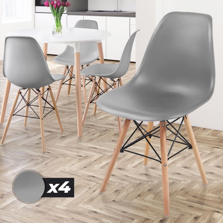 Miadomodo Sada 4 jídelních židlí s plastovým sedákem, šedá