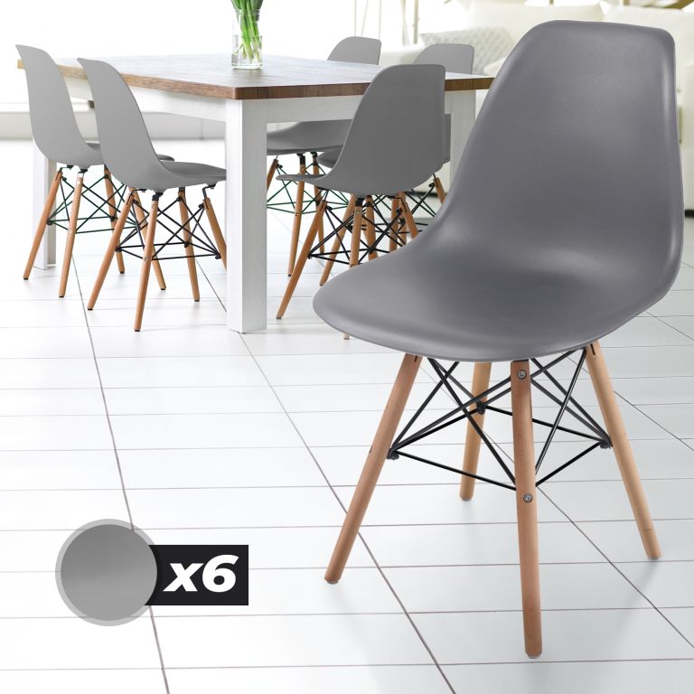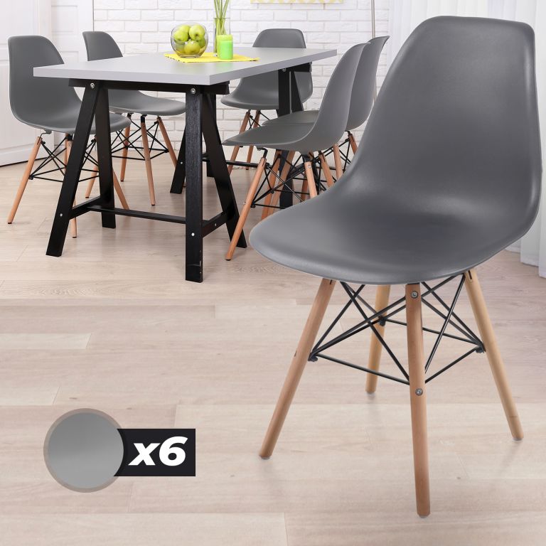 Miadomodo Sada 6 jídelních židlí s plastovým sedákem, šedá