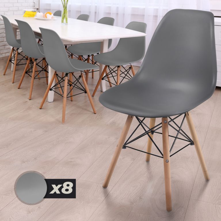 Miadomodo Sada 8 jídelních židlí s plastovým sedákem, šedá