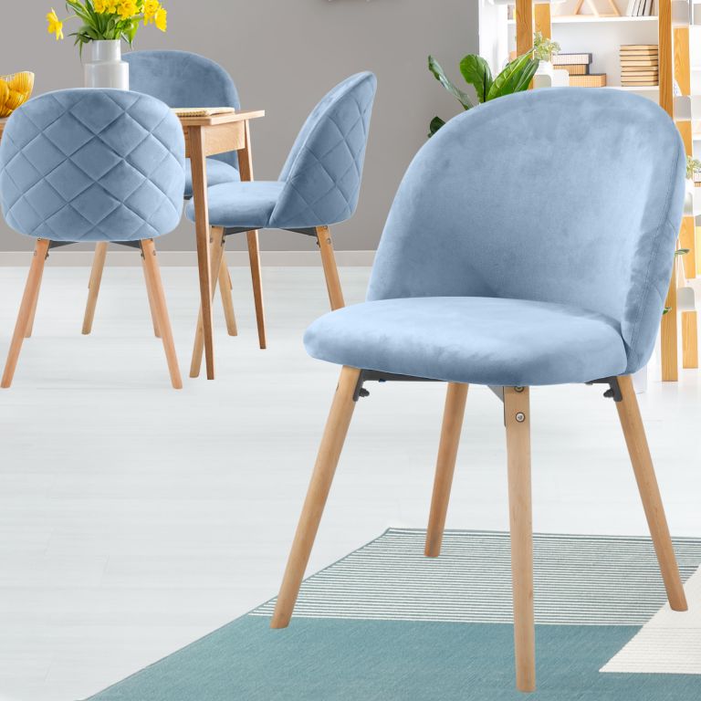 Nábytek ve skandinávském stylu je již nějakou dobu trendem jak v domácnostech, tak v komerčních zařízeních. Tyto židle v moderním designu Vám nabízí nohy z bukového dřeva které zajistí skvělou stabilitu a příjemný sametový potah pro to správné posezení. Upozornění: Barvy se mohou mírně lišit od vyobrazení.