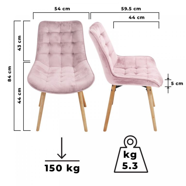 Tyto sametové židle do jídelny promění každé stolování v nezapomenutelný zážitek. Protiskluzové nohy jsou vyrobeny z bukového dřeva.
