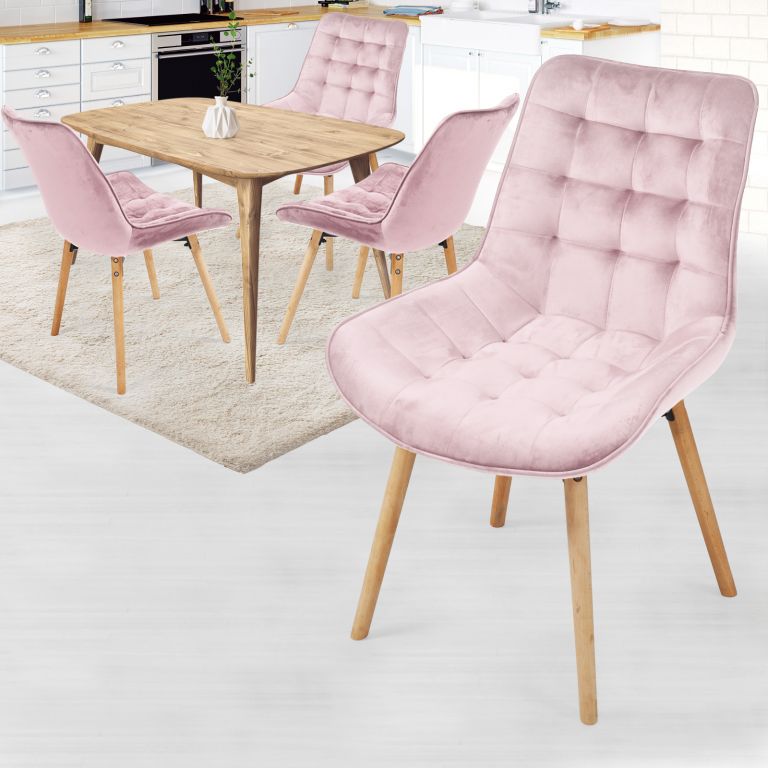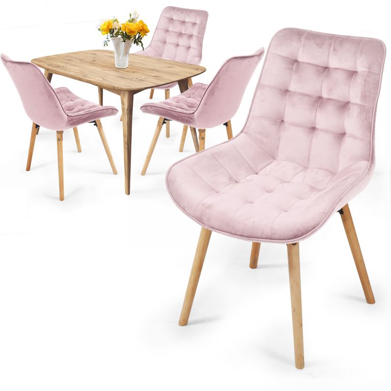 MIADOMODO Sada prošívaných jídelních židlí, růžová 4 ks