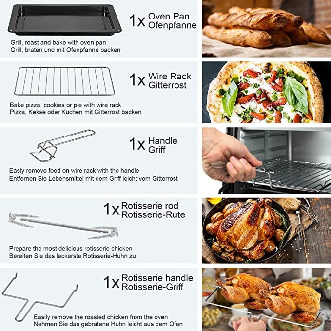 Připravte si jídlo během okamžiku. Černé pouzdro dokonale zapadá do jakéhokoliv typu kuchyňského vybavení ve vašich studiových apartmánech, kolejích, karavanech. S objemem 60 litrů vám naše mini trouba pomůže dosáhnout vynikajících výsledků ve vaření.